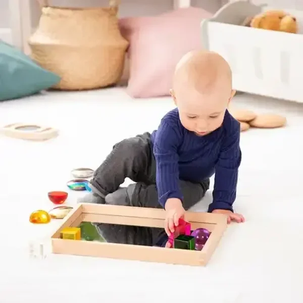 Laat je kindje op een magische manier spelen en ontdekken met dit prachtige houten spiegelbakje van Tickit.
